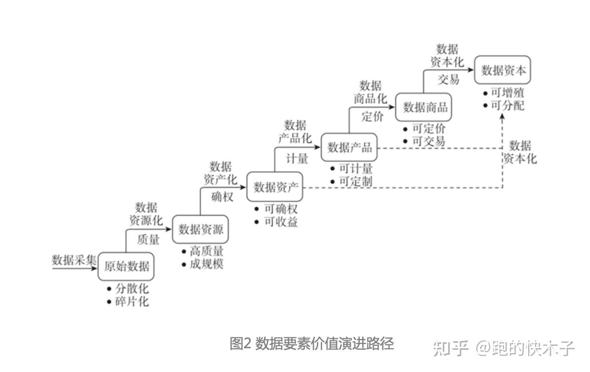 原始数据→数据资源→数据资产→数据产品→数据商品→数据资本